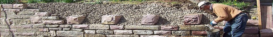 Beschreibung: Abbau des Bestandsmauerwerks aus Wesersandstein unter Aussortieren wiederverwertbarer Bestandteile. Errichtung eines neuen Fundaments und Wiederaufbau der Stützmauer unter Verwendung der alten Mauersteine soweit möglich. Zerstörte Mauerteile wurden durch Nachbauten der Originale aus Wesersandstein ersetzt.